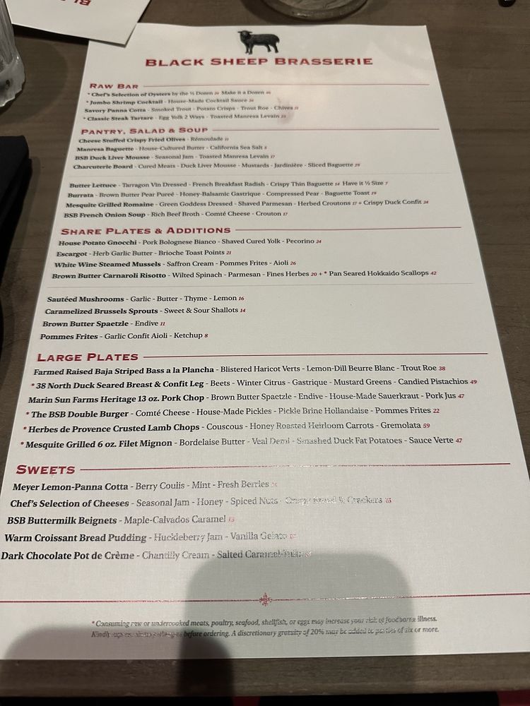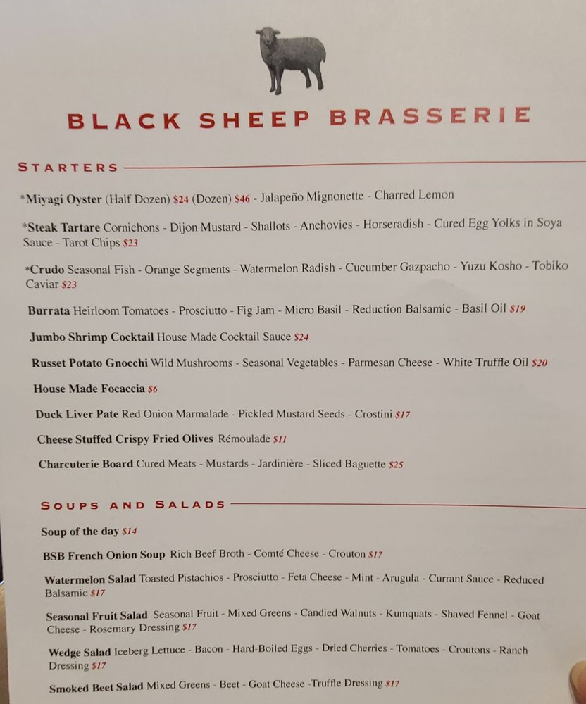 Black Sheep Brasserie, located in San Jose, offers a trendy and casual dining experience with a variety of options for all dietary preferences, including pescatarian and vegan. Their menu features dishes like the flavorful steak tartare with unique combinations of flavors, the hearty duck liver pate, and the delicious beet salad. Despite some reviews mentioning slower service, the quality of the food and attentive staff make it a worthwhile dining choice. With a range of options from oysters to butternut squash soup, Black Sheep Brasserie caters to a diverse group of diners. Whether you're looking for a special occasion spot or a place to enjoy happy hour, Black Sheep Brasserie is sure to leave you satisfied.